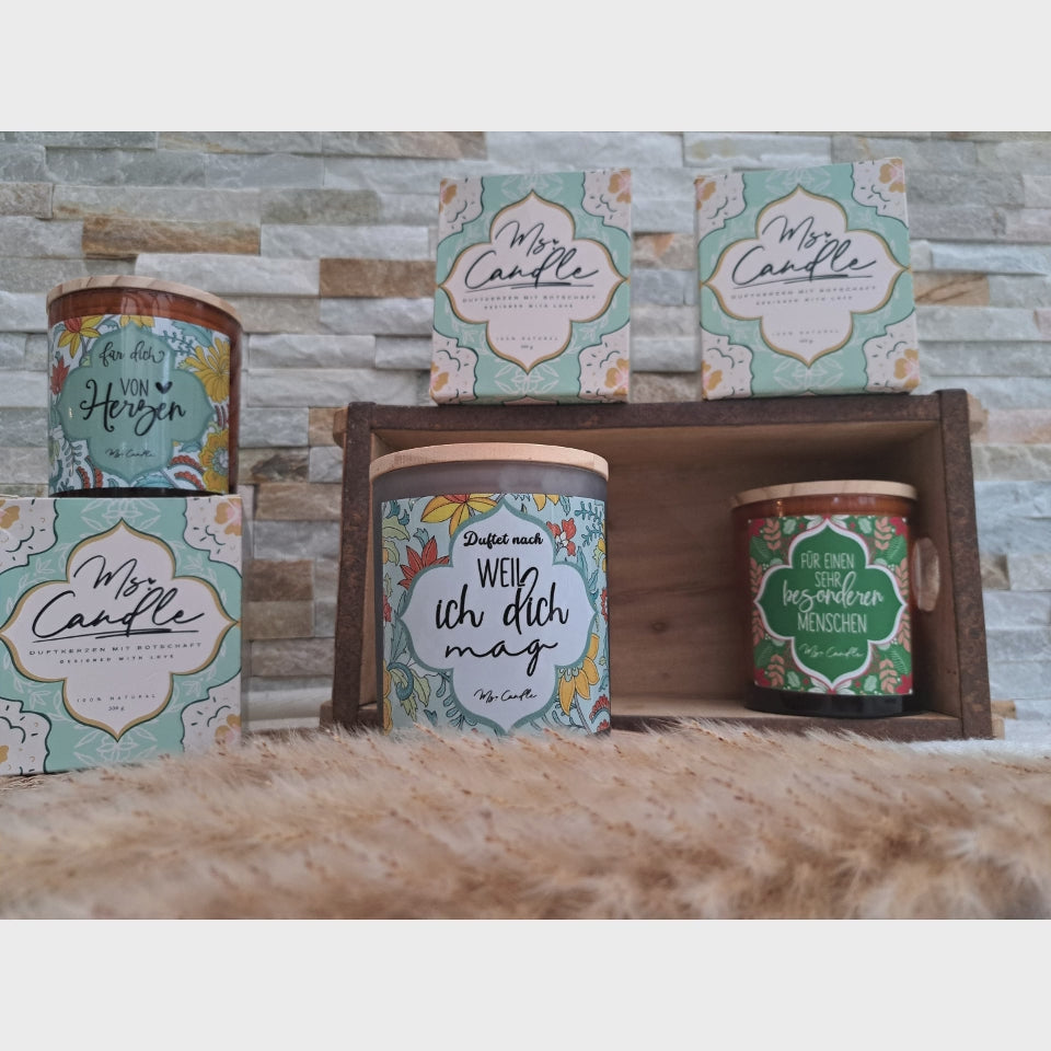 Unsere Duftkerzen sind eine liebevolle Möglichkeit, jemandem deine Wertschätzung und Dankbarkeit zu zeigen. Durch ihr besonderes Design sind sie auch ein vielseitiges Deko-Accessoire, das jedem Raum einen besonderen Charakter verleiht.